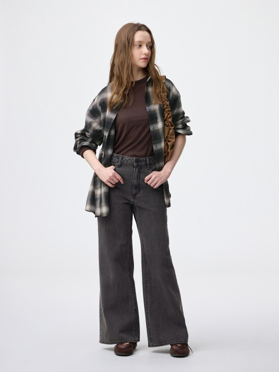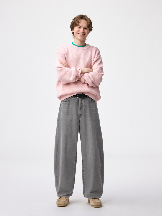 - 腕まくりがしやすい袖口リブ仕様。