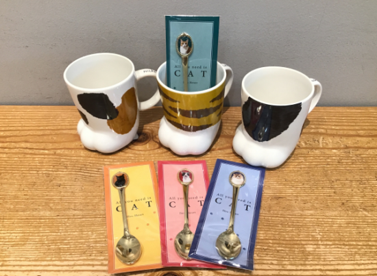 【ねこの肖像スプーン 440円(税込)、necoashiマグ 1,430円(税込)】